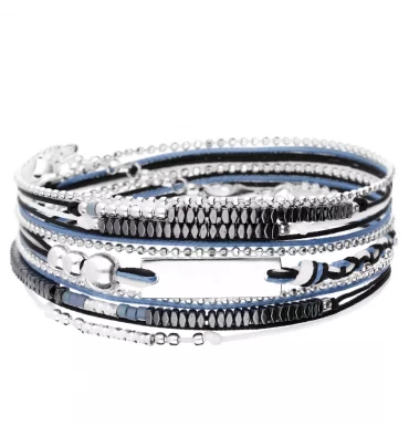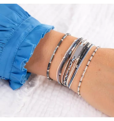 Bracelet Multi tours signé DORIANE bijoux. Du Bleu pour égayer votre manchette ! Les couleurs pleines de pep’s séduisent les bijoux Doriane. Fabriqué dans l’Atelier DORIANE du Sud de la France, ce Bracelet en Argent 925 se compose de cordons Bleu Saphir, Blancs et Noirs, de Perles en Hématite Noires, de Perles en Miyuki Bleu, et d’une jolie Plaque en Argent 925 ! Toutes les breloques de nos Bijoux Gravés sont soudées, afin de vous garantir une qualité exceptionnelle. Vous n’avez pas de risque de perdre votre pendentif plaque en Argent.