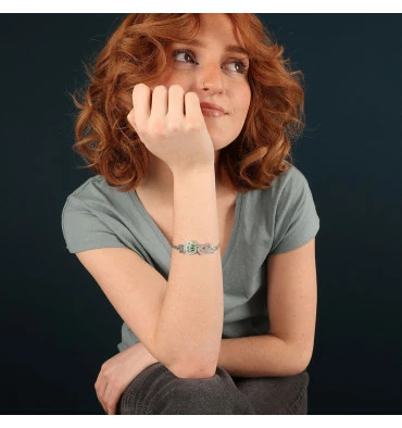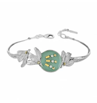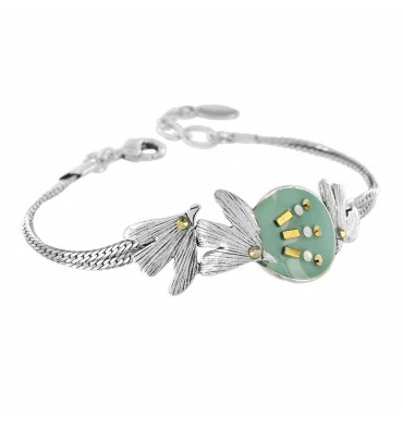 Bracelet signé TARATATA bijoux orné de petits oiseaux argentés et d’une touche de Bleu.