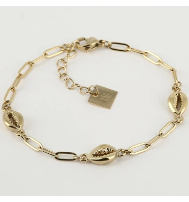Bracelet Sanaé signé ZAG Bijoux doré à l’or fin et parsemé de petits motifs de métal en forme de coquillage.