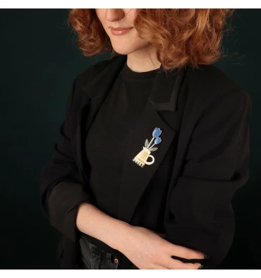 Broche fantaisie TARATATA livrée dans la pochette de la marque.