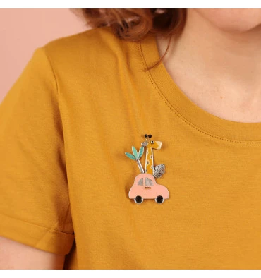 Broche fantaisie TARATATA livrée dans la pochette de la marque.