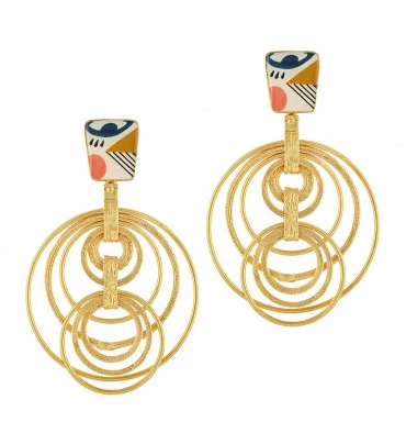 Composition : Résines colorées dont les motifs sont peints à la main, Métal sans nickel et traité contre les allergies.