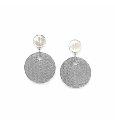 Composition : Nacre Blanche, Laiton plaqué argent garanti sans nickel et traités contre les allergies.