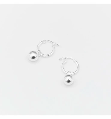 Boucles d’oreilles Créoles signées CANYON ornées d’une boule pendante.