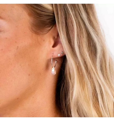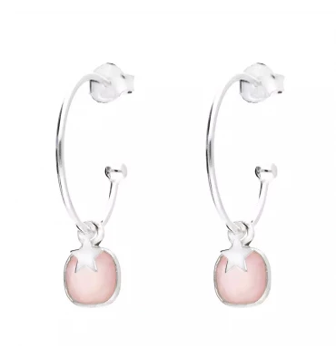 Créoles Rosa signées DORIANE. Découvrez les nouvelles Créoles Lovina Étoile au diamètre de 2 cm ! Ces Créoles font partie des bijoux indispensables pour Sublimer votre look à la Perfection ! On revisite les Créoles Traditionnelles en y ajoutant un petit pendentif Carré en Pierre Semi-Précieuse de 6 mm : La Calcédoine rose. Une petite Étoile Rock en Argent vient s’ajouter à la Pierre, pour apporter encore plus de Brillance au modèle.