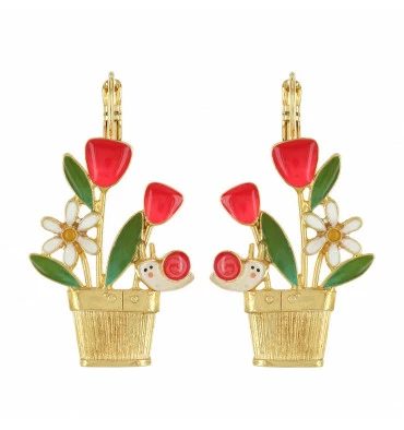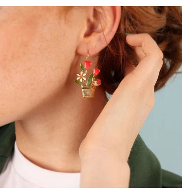 Composition : Résines colorées dont les motifs sont peints à la main, Métal sans nickel et traité contre les allergies.