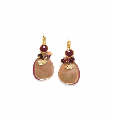 Dormeuses signées NATURE bijoux ornées de Nacre Brune.