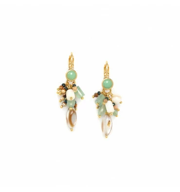 Dormeuses Grappe signées NATURE bijoux ornées pierres naturelles.