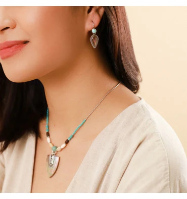 Envie d’un bijou pour accessoiriser vos looks cet été ? Craquez pour ce bijou appartenant à la collection MALIBU. Son style ethnique chic et ses matières naturelles associées au métal argenté apporteront la touche tendance et féminine à vos tenues !