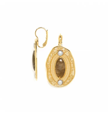 Dormeuses ovales signées FRANCK HERVAL ornées de pierres naturelles.