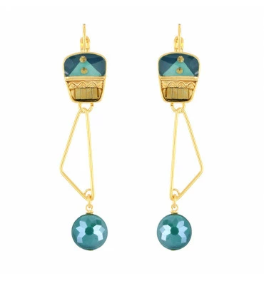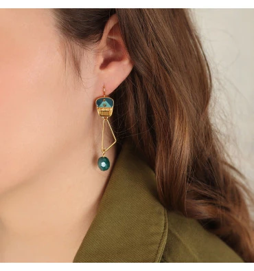 Composition : Résines colorées dont les motifs sont peints à la main, Perles en verre, Strass, Métal sans nickel et traité contre les allergies.