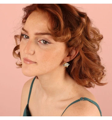 Composition : Résines colorées dont les motifs sont peints à la main, Strass, Métal sans nickel et traité contre les allergies.