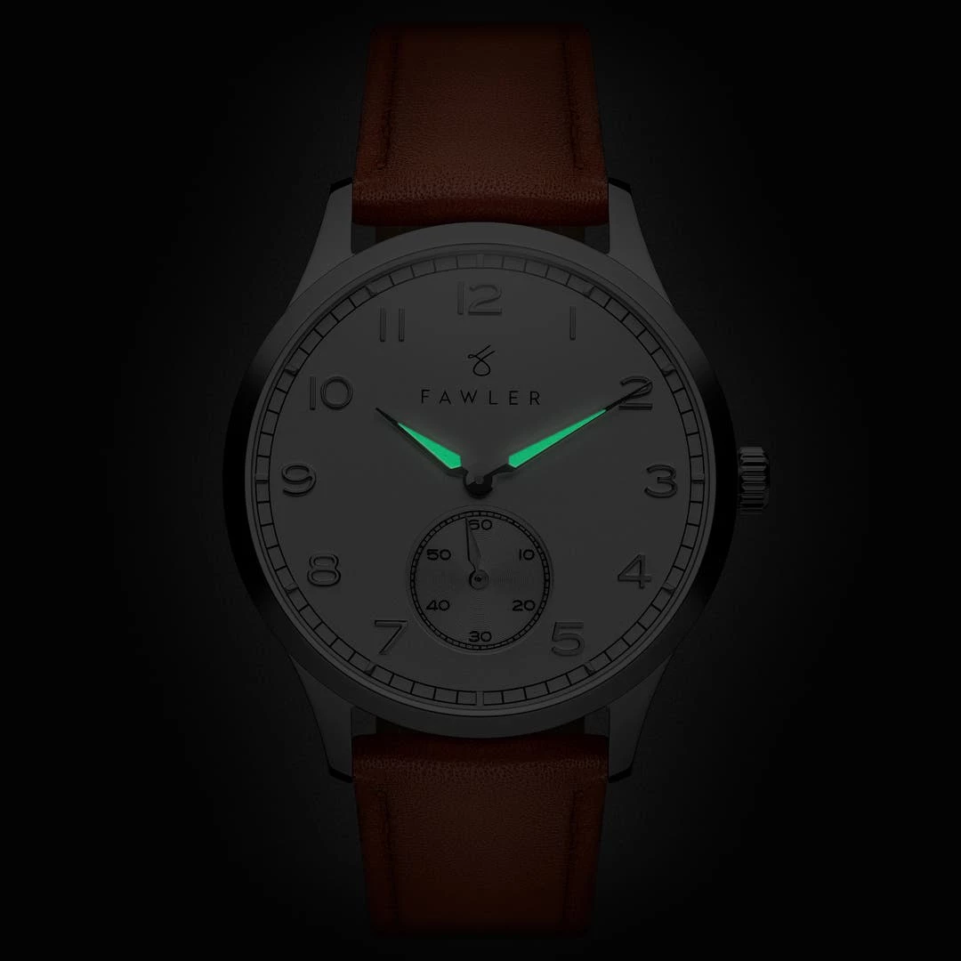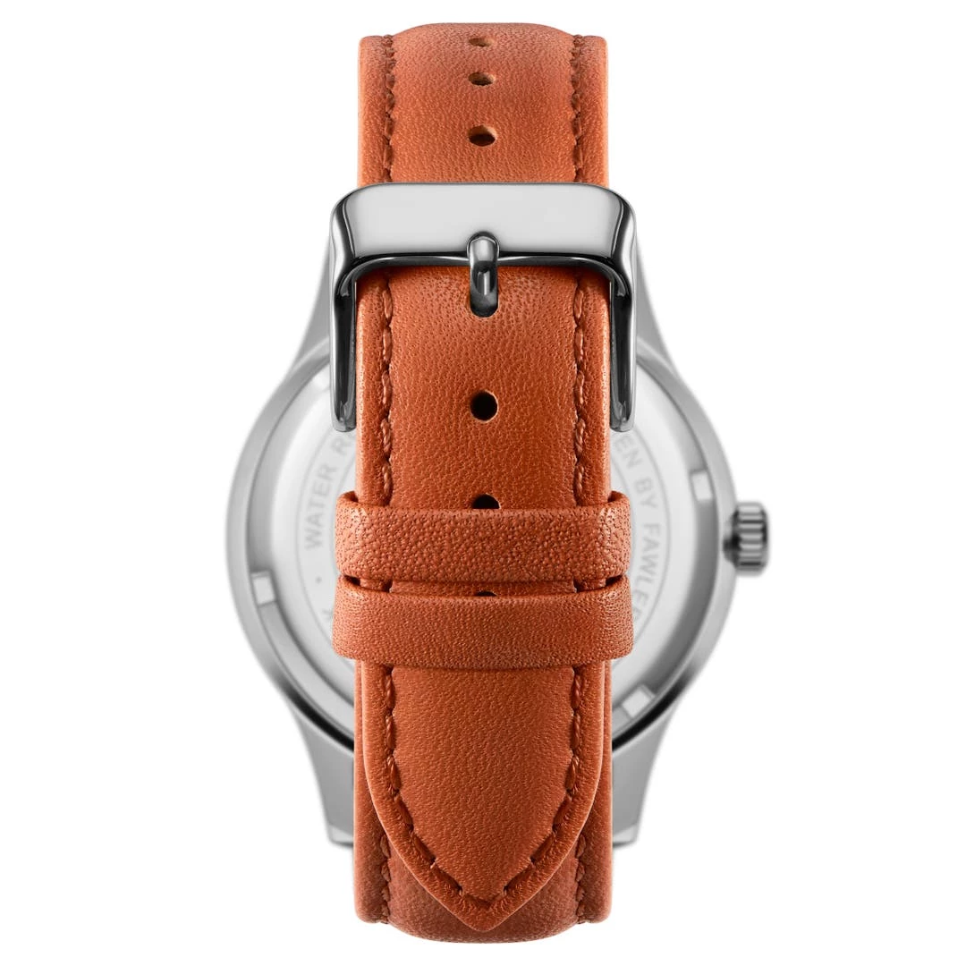 Conçue au Danemark. Étanche à 50 mètres. Livrée dans une boîte de rangement signée Fawler.