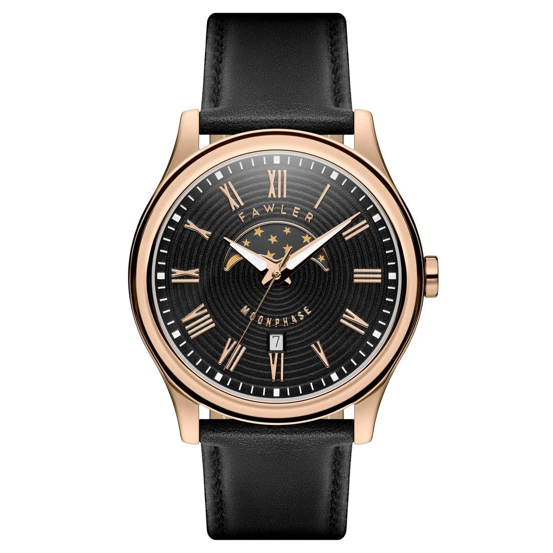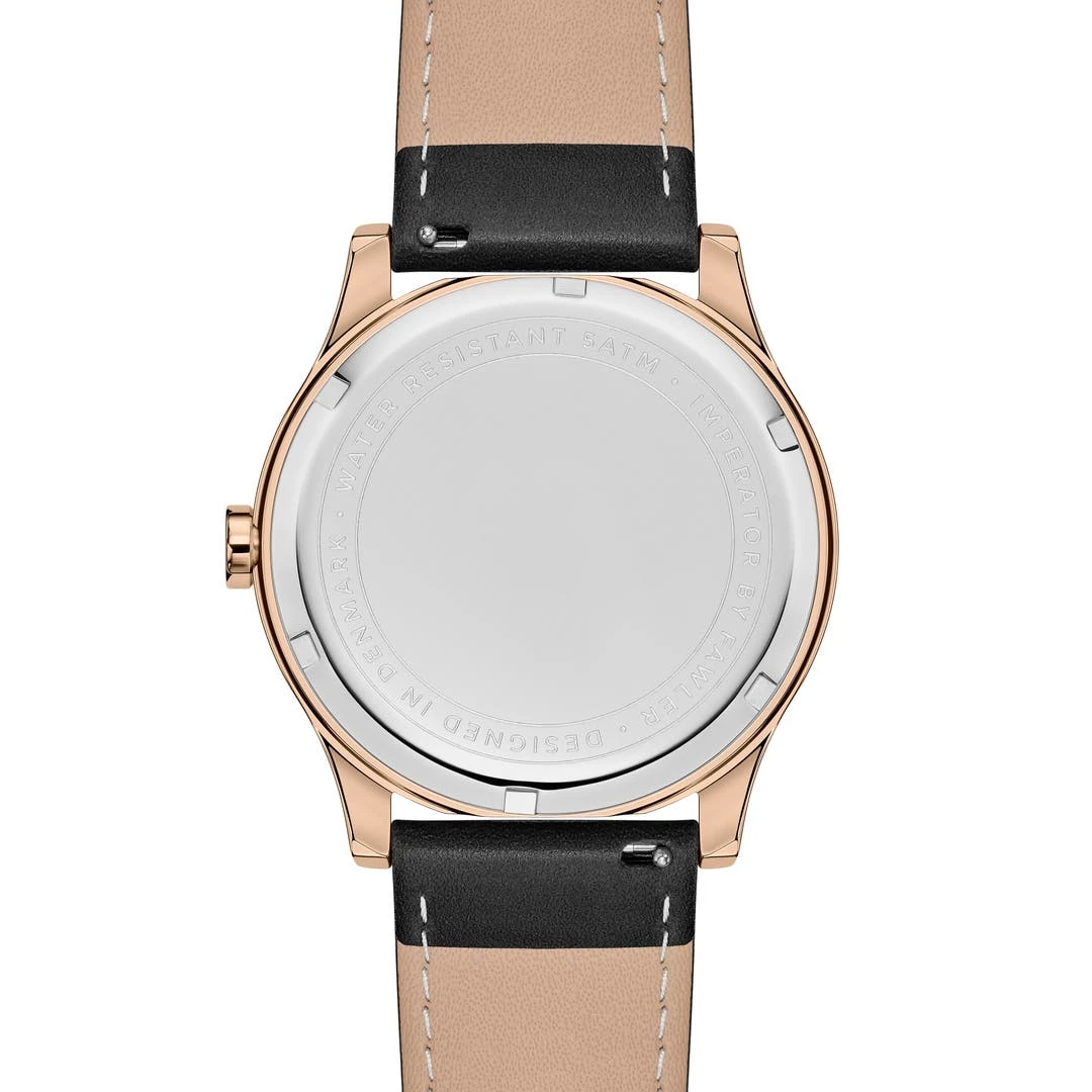 Cette montre est propulsée par un mouvement suisse Ronda d’une grande fiabilité. Des barrettes à ressort à dégagement rapide vous permettront de changer de bracelet facilement sans aucun outil. Vous pourrez la glisser à votre poignet grâce à son bracelet en véritable cuir noir qui développera une patine unique au fil du temps.