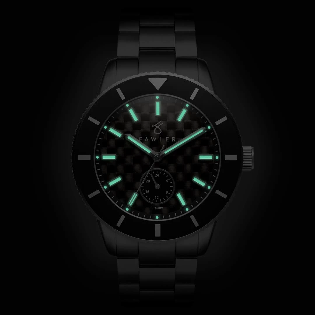 Propulsée par un mouvement à quartz Seiko VH60 haut de gamme, sa trotteuse se déplace tous les ¼ de seconde. Son cadran est décoré d’un sous-cadran affichant l’heure sur une échelle de 24 heures.