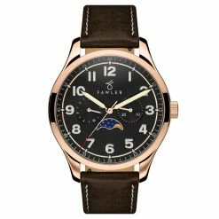 Aiguilles et chiffres qui brillent dans le noir vous permettant de lire l’heure même en pleine obscurité et sous-cadran à phases de lune pour un look intemporel.