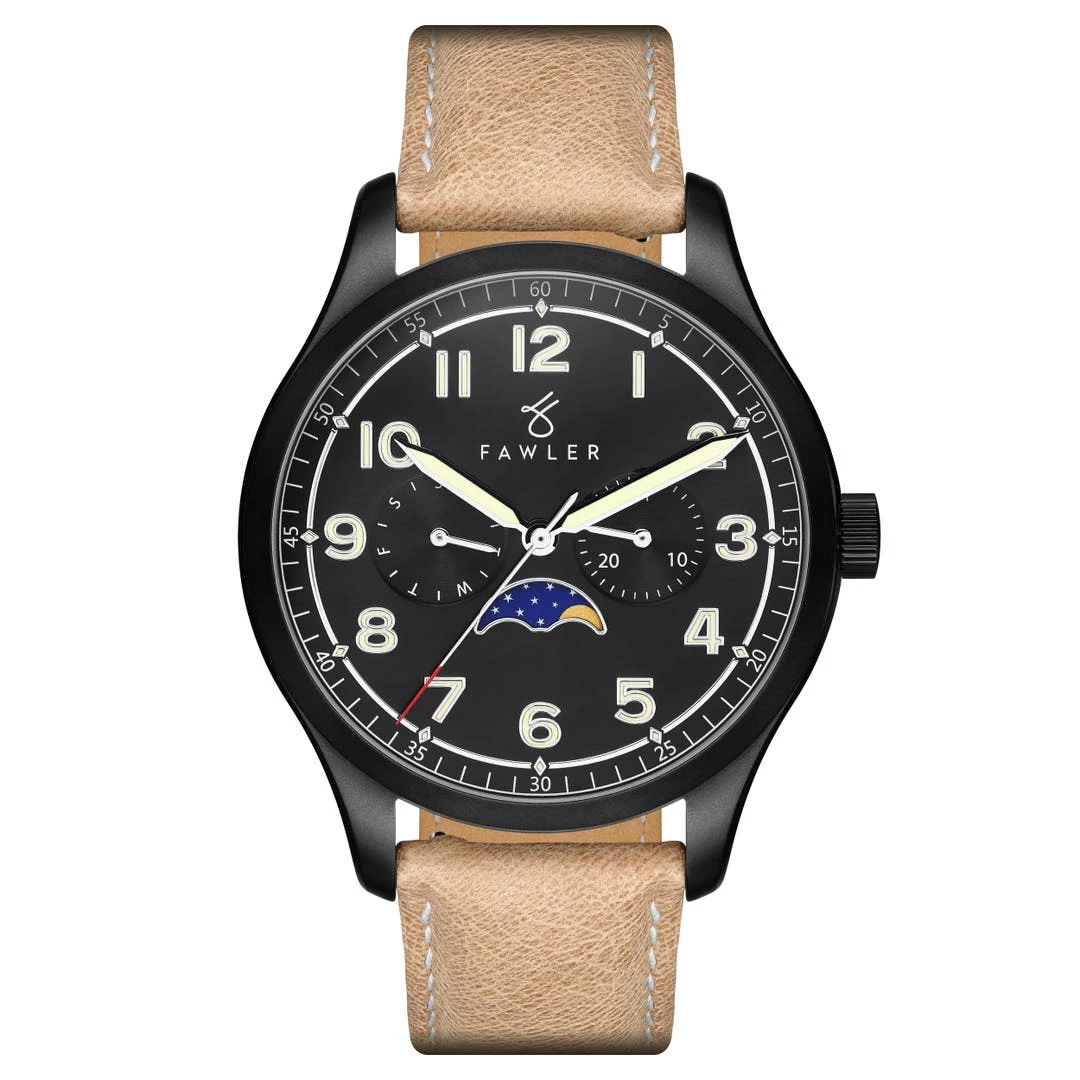 Aiguilles et chiffres qui brillent dans le noir vous permettant de lire l’heure même en pleine obscurité et sous-cadran à phases de lune pour un look intemporel.