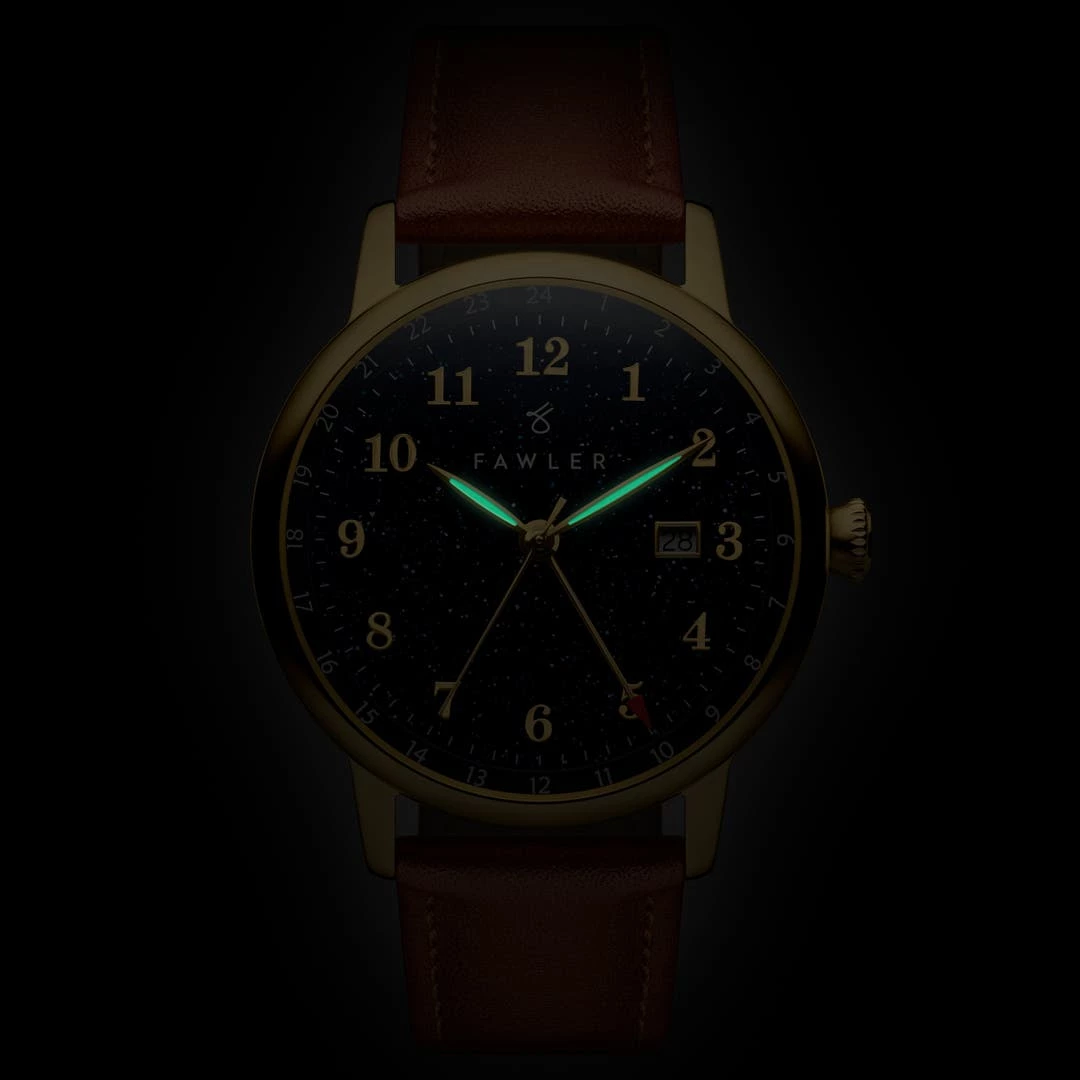 Cette montre pour homme, propulsée par un superbe mouvement suisse Ronda GMT, est équipée d’une complication GMT et d’une quatrième aiguille qui fait le tour du cadran une fois par jour. Cette aiguille indépendante pourra être réglée sur le fuseau horaire de votre choix. Si vous êtes un grand voyageur et devez régulièrement régler votre montre, nous vous recommandons de la régler sur le fuseau horaire de votre domicile.