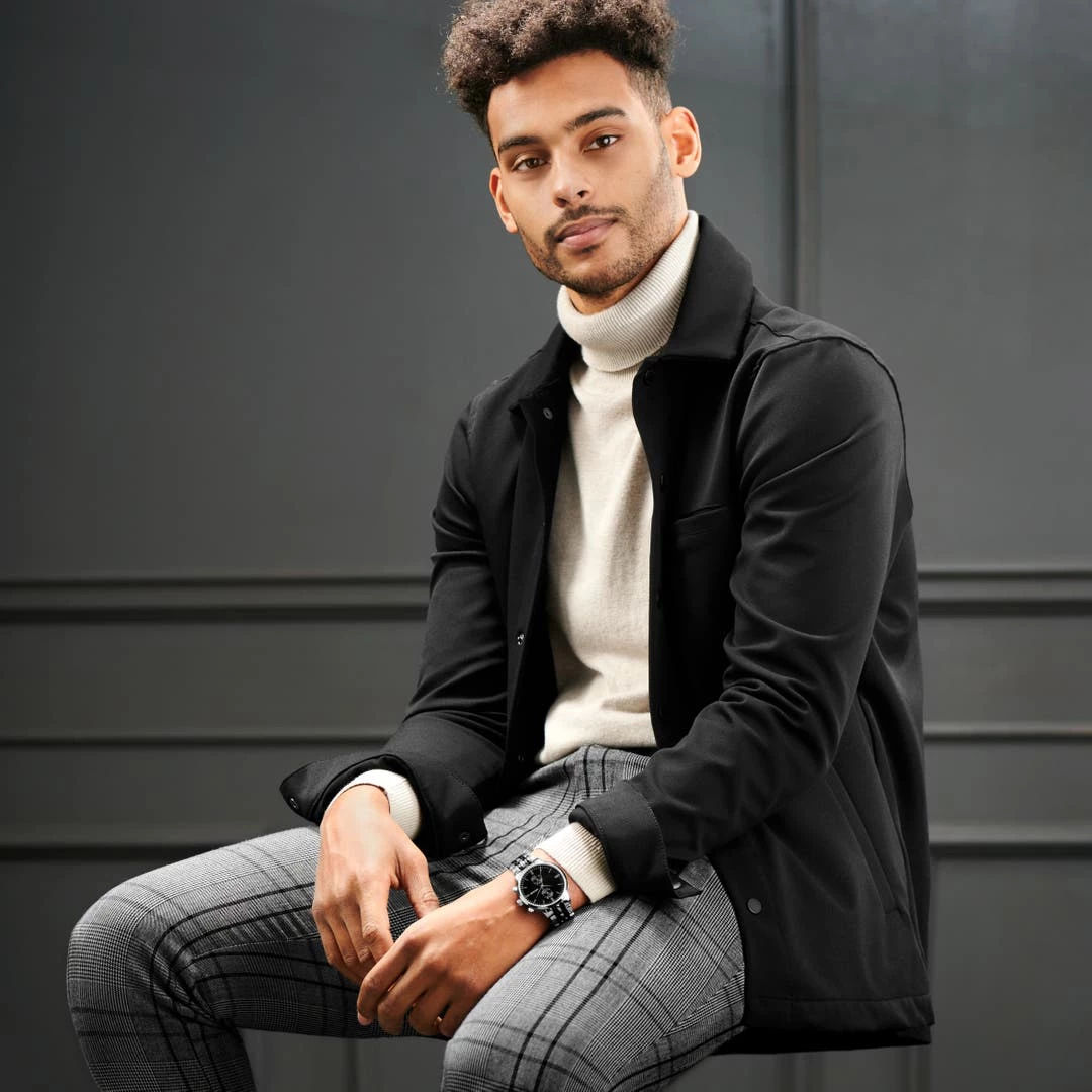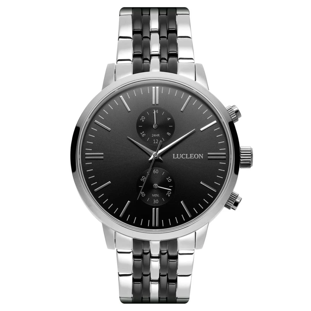 Cette montre pour homme présente un cadran noir avec des marqueurs et des aiguilles argentés contrastants. Elle présente 2 sous-cadrans vous permettant de suivre chaque seconde avec précision.