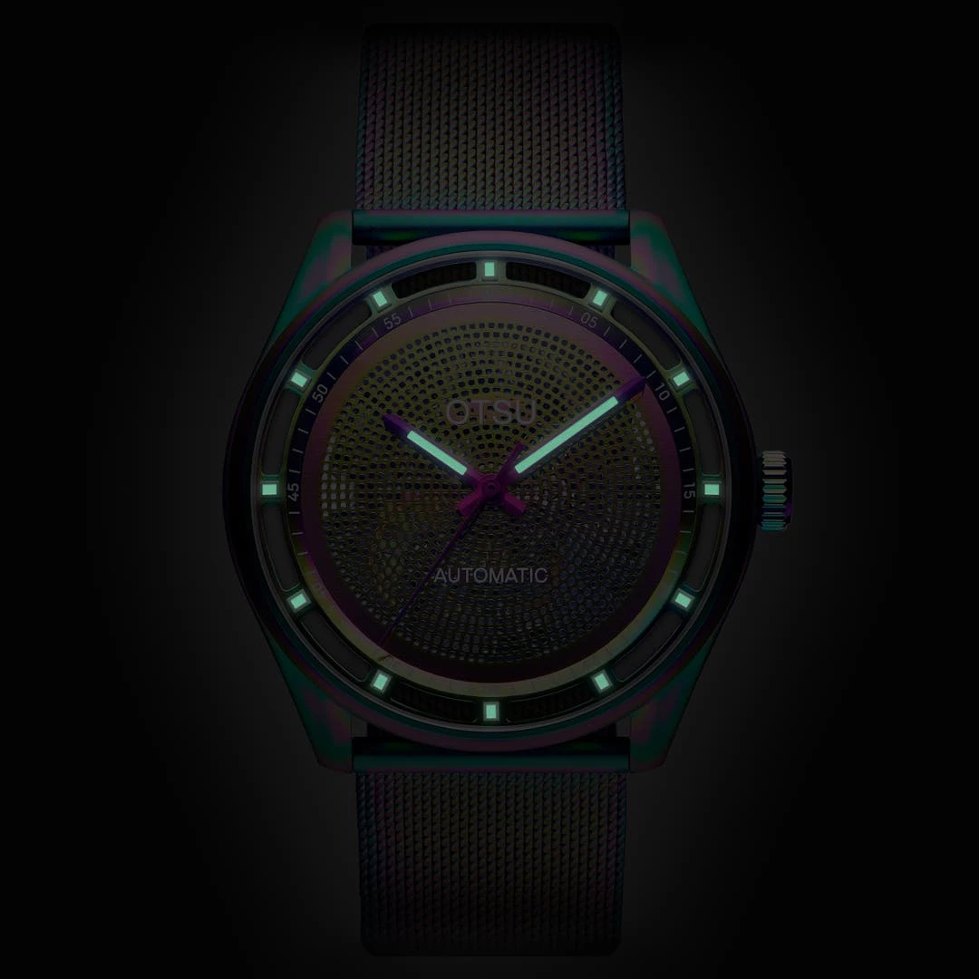 Enfin, une peinture phosphorescente japonaise de haute qualité recouvre les aiguilles et les graduations afin que vous puissiez lire l’heure même dans l’obscurité la plus totale.