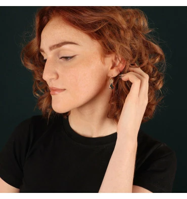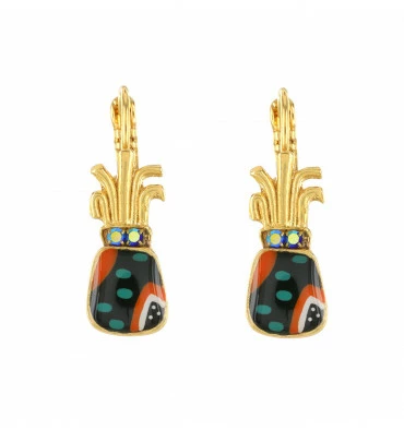 Composition : Résines colorées dont les motifs sont peints à la main, Chaine de strass, Métal sans nickel et traité contre les allergies.