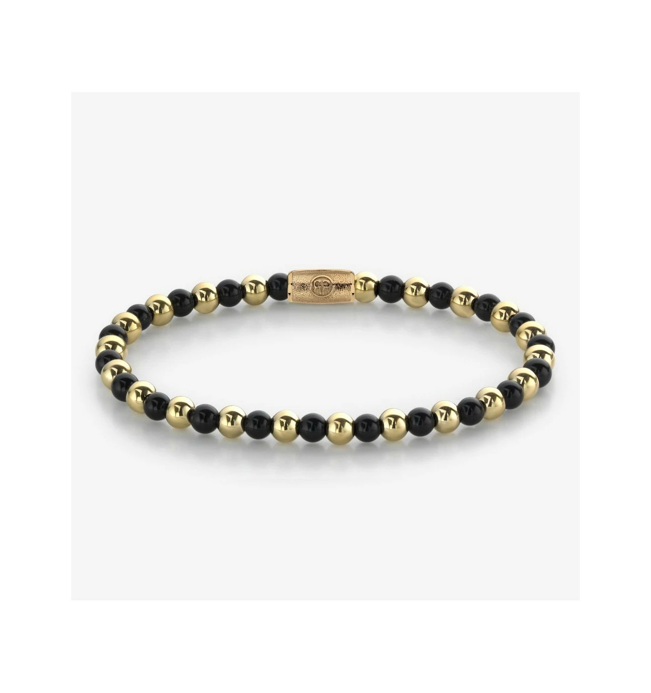 Bracelet extensible Mix Black Madonna pour femme signé REBEL&ROSE orné du logo de la marque plaqué or 18 carats.