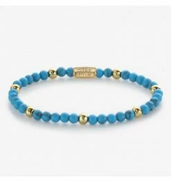 Bracelet extensible pour femme More Balls Than Most signé REBEL&ROSE composé de pierres semi précieuses turquoise de 4mm et de billes plaquées or. Le bracelet est orné du logo de la marque.