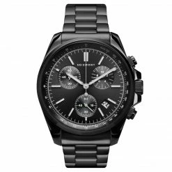 Ce chronographe en acier inoxydable chirurgicale est équipé d’un mouvement japonais d’une grande précision et d’un verre saphir antireflet pour une lisibilité maximale.
