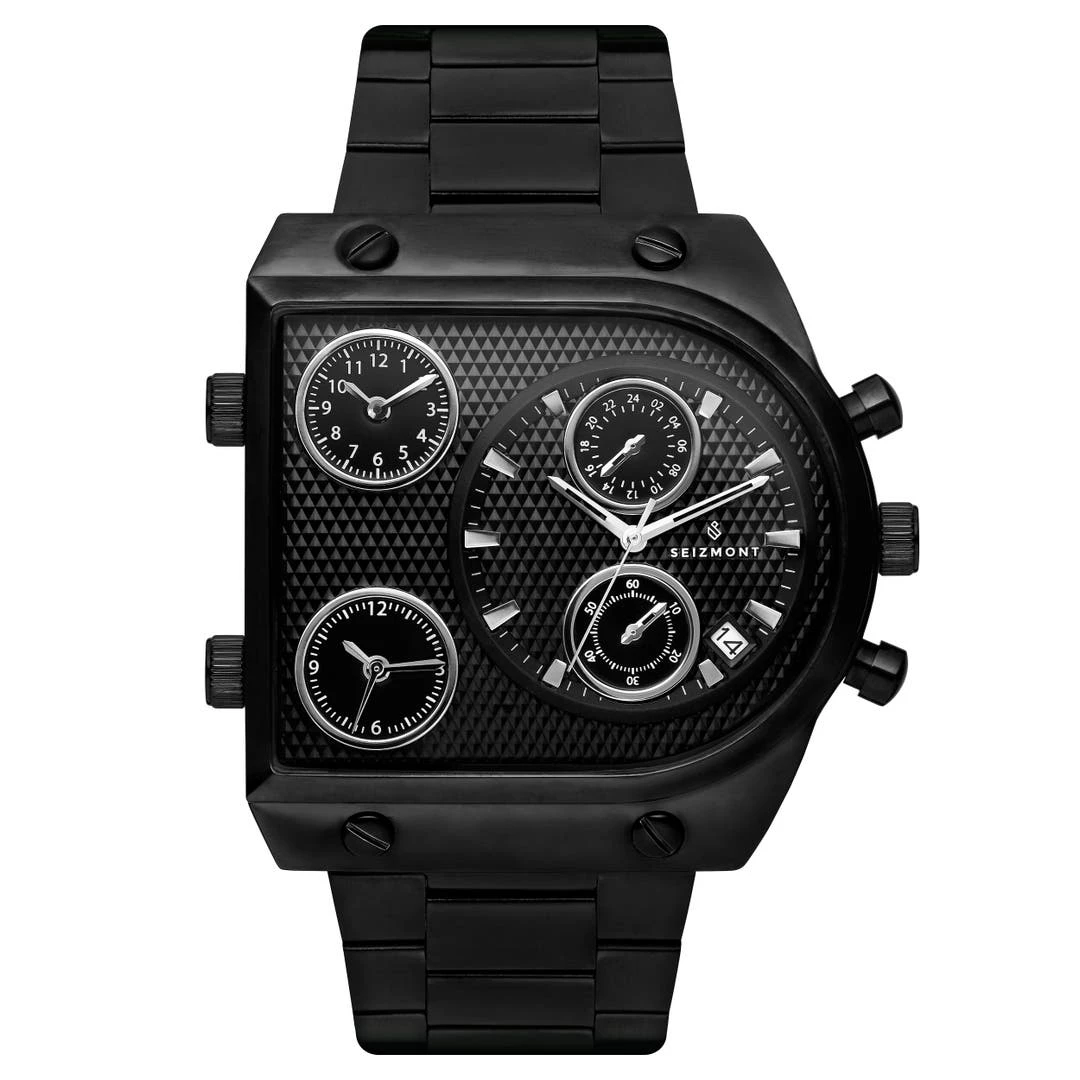 Des tons noirs très smart, un bracelet métallique équipé d’un fermoir à boucle déployante et 3 mouvements à quartz séparés alimentés par pile font de cette montre un accessoire unique en son genre.