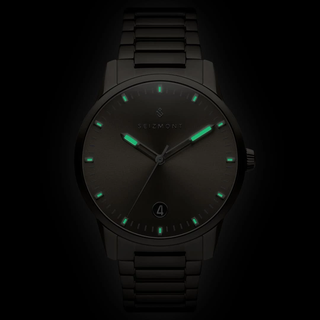 Du verre bombé anti-reflets protège son cadran minimaliste, améliorant la lisibilité même sous la lumière la plus éblouissante. Ses aiguilles classiques et graduations sont revêtues d’une lumière phosphorescente de haute qualité – vous pourrez lire l’heure même après que le coucher de soleil.
