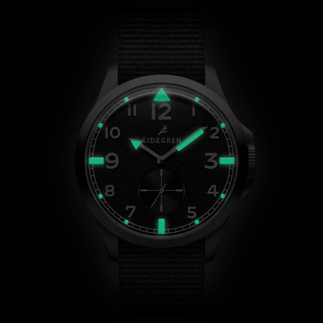Un sous-cadran situé à 6 heures abrite sa trotteuse. Sous le cadran, un mouvement japonais Miyota fiable garantit une excellente précision. Le boîtier en acier chirurgical est surmonté d’un verre bombé. Un bracelet NATO léger et durable en nylon à tissage simple la maintiendra bien en place autour de votre poignet. Lorsque ce bracelet est sale, passez-le simplement à la machine avec votre linge. Le bracelet… pas le boîtier de la montre, évidemment.