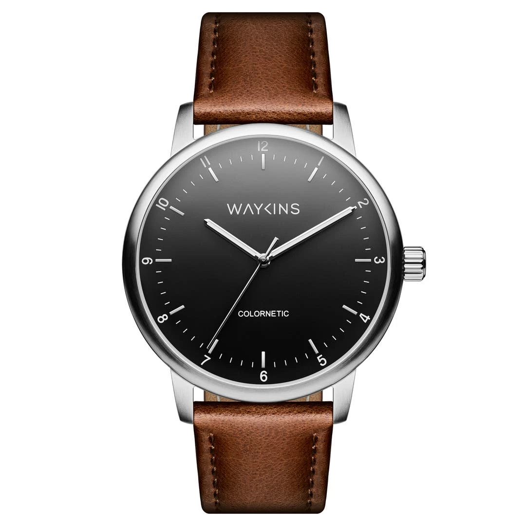 Du noir au rouge, vert, bleu, toujours de teinte foncée pour garder un contraste avec les aiguilles et les marqueurs argentés. Couleurs changeantes – style immuable.